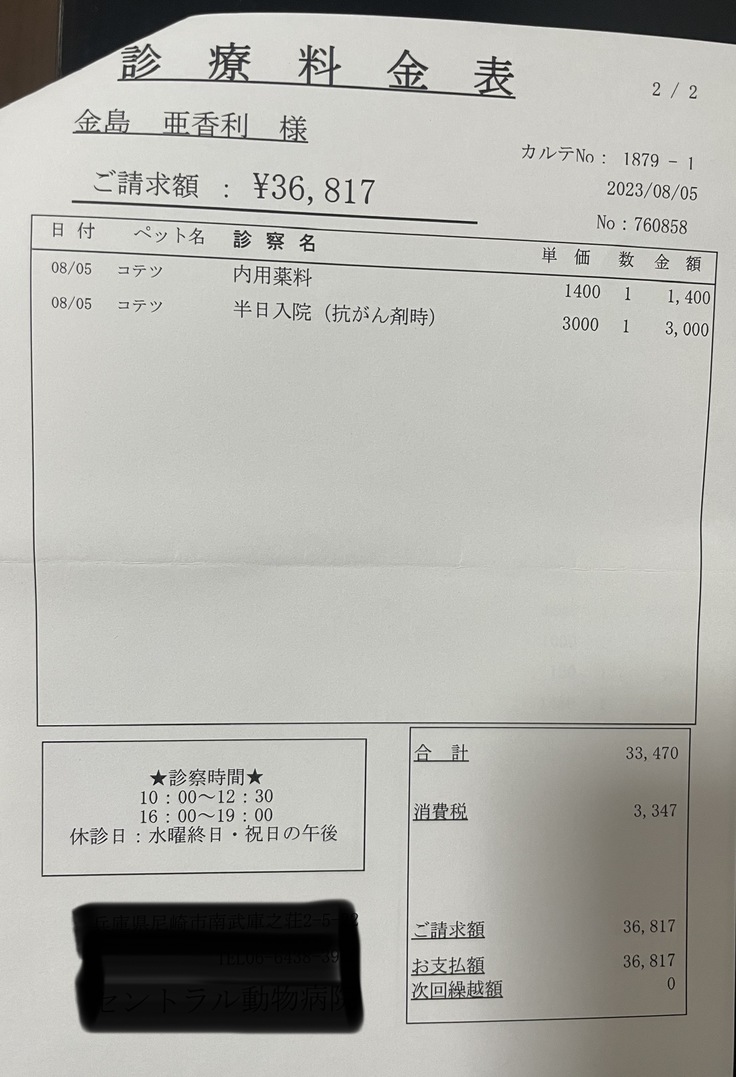 虎徹🐯の抗がん剤治療が始まりました。