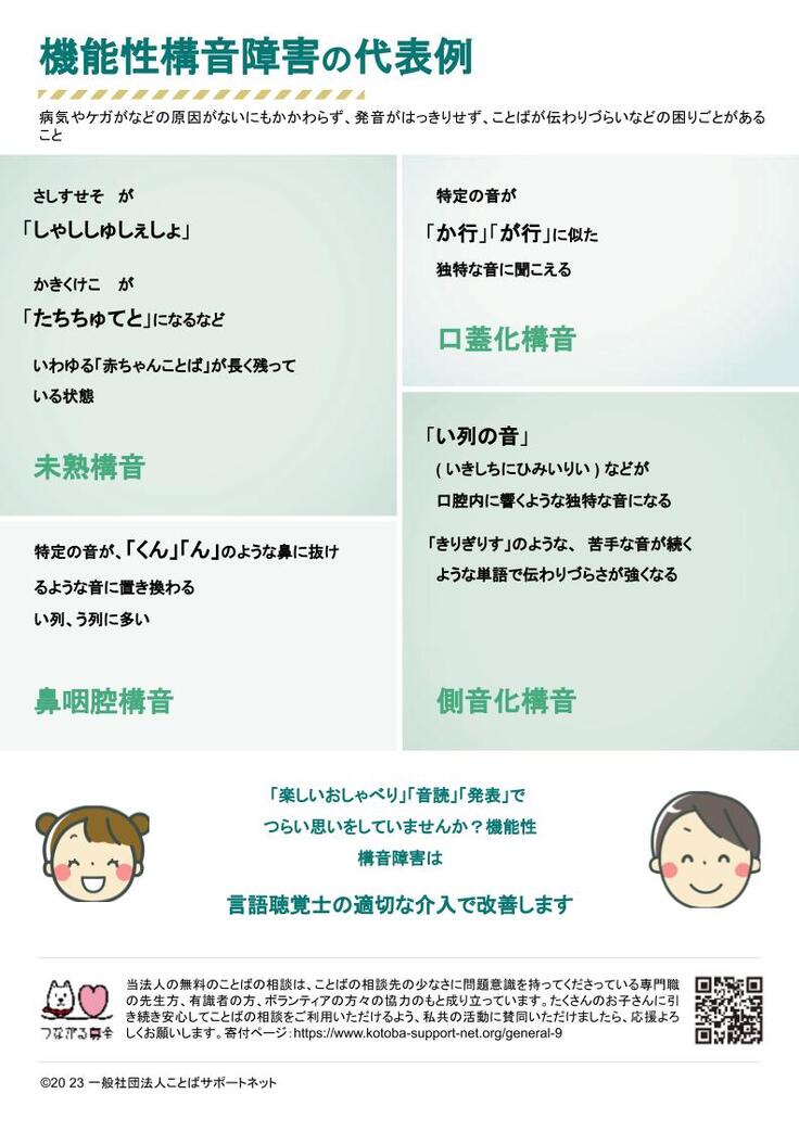 それと同時に、「言語聴覚士」や「機能性構音障害」についてはまだまだ一般には知られていないということも再認識し、今回のパンフレット作成の意義も、一段と強く感じているところです。