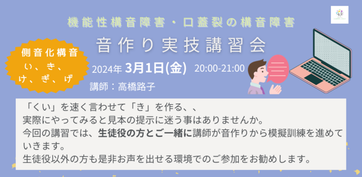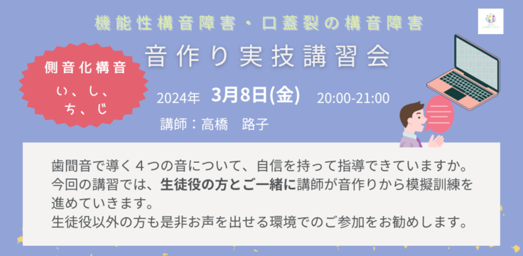 構音障害のある方に関わる先生方おひとりおひとりが無理なく構音指導の技術を身に付けられるようお手伝いすることで、その先にいらっしゃる構音障害のある方々にとって少しでも選択肢が増えることを願っています。