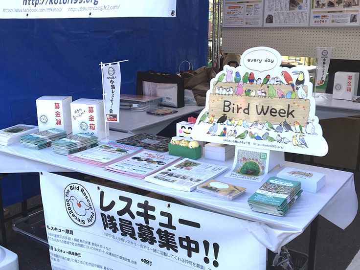小鳥レスキュー会さんとは、愛鳥週間などのイベントで声を掛けていただき、コラボさせていただきました。その他メールで情報交換をしています。