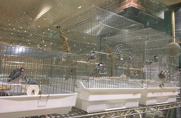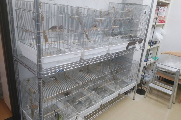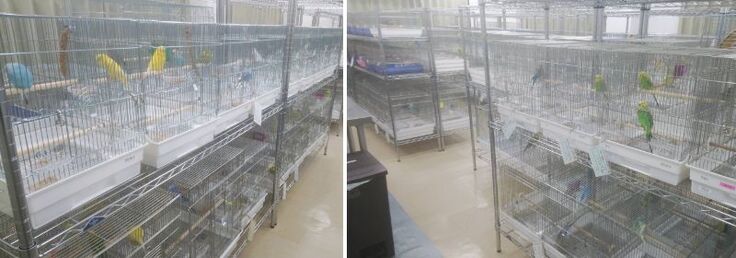 ケージが全て搬出された後、残っていた7羽の外文鳥。