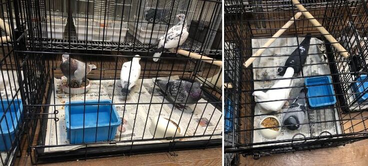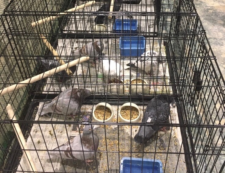 外の小屋にいた鳩たちもケージの中に。
