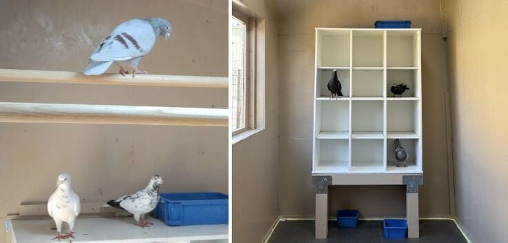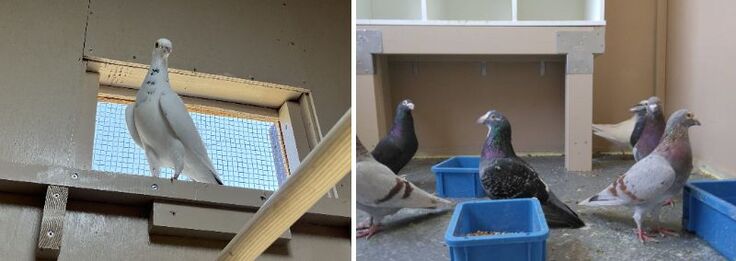 新しい鳩小屋には個室もあって楽しそうです。