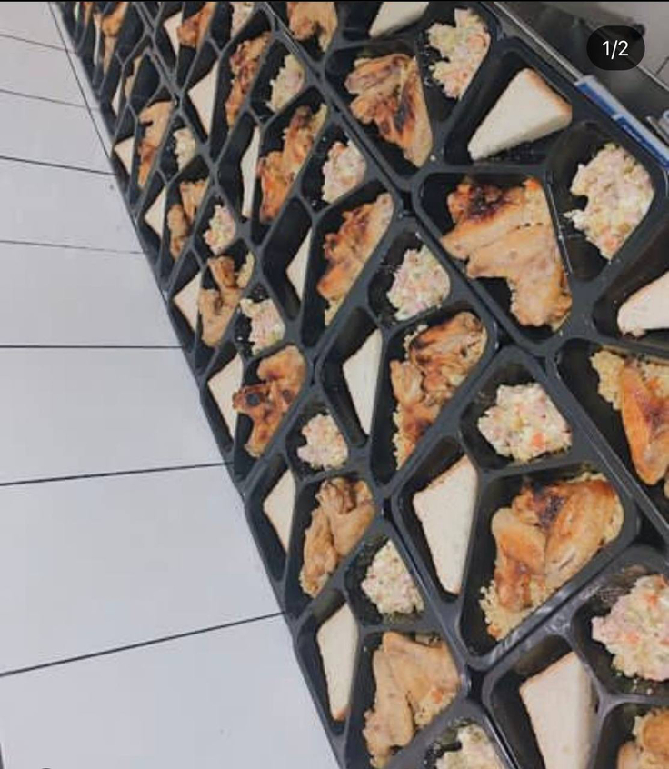 100UHA弱(約450円)で個々へデリバリー代を含める1パッケージ(調理したもの、フルーツ、軽食、飲料)となります。