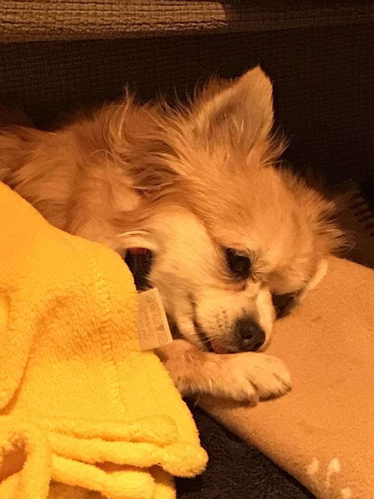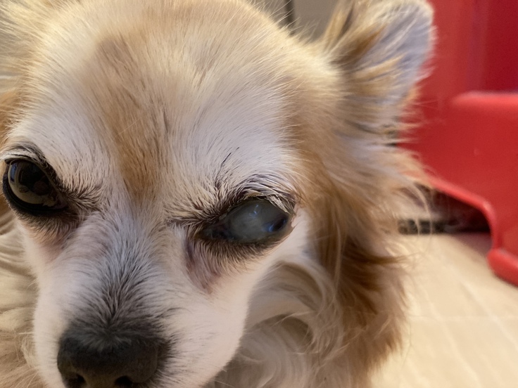 こつぶちゃんの状態は日に日に悪化。彼は自分で立つことができず、体制を変えるたびに目が激しく回転し、体もぐるぐると横回転してしまいます。さらに、左目のまぶたは完全に閉じなくなり、眼球が直接シーツに擦れる状態で、傷がついてしまいました😢。息も荒く、とても苦しそうで見ていられませんでした。