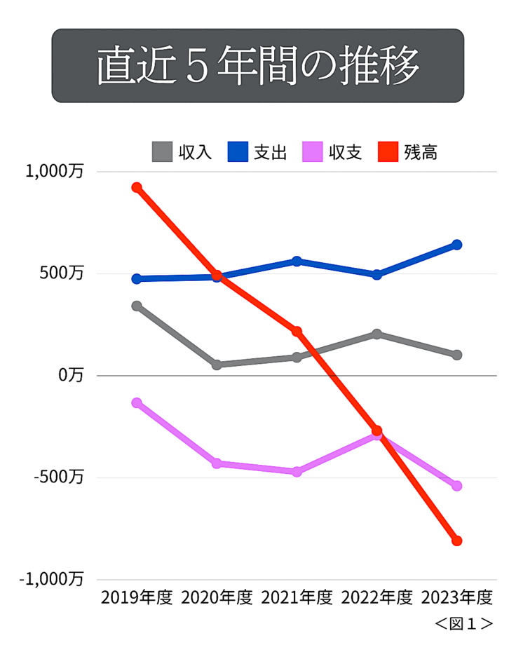 2020年以降、コロナ禍の影響で寄付収入が大幅に低減しました。その影響は現在も継続しています。その結果、残高に関しては、2023年度はマイナス800万円を超過しました。