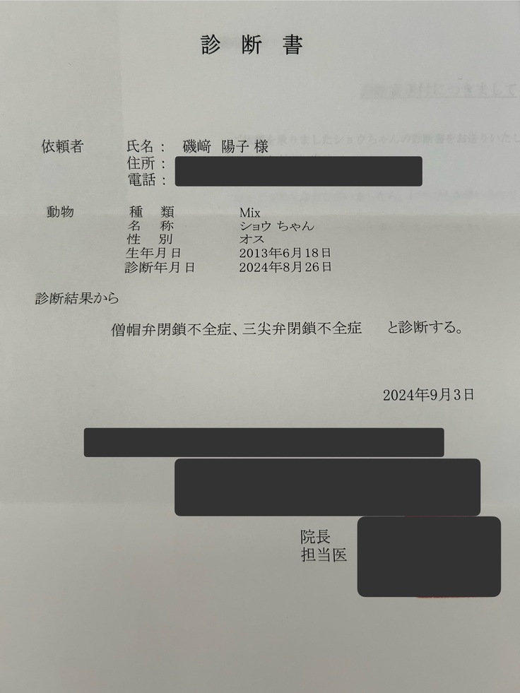 また、早ければ早いほど手術の成功率が上がるとの話があり、ショウの命を最優先として手術を早めさせていただくことといたしました。