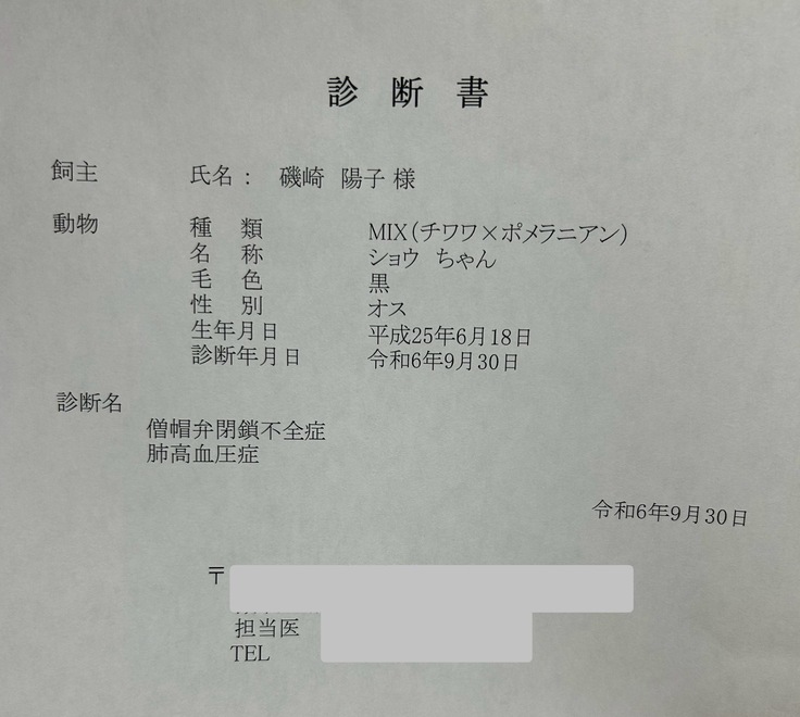 集まった資金は全てショウの僧帽弁閉鎖不全症に関する費用に充てます。手術費約190万円。