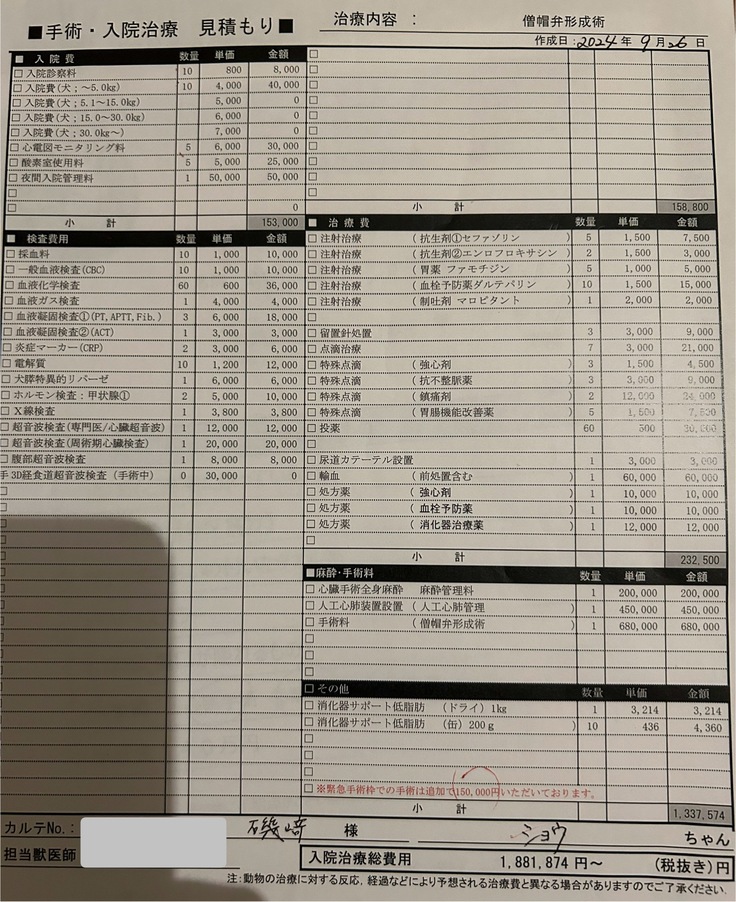 ⚫︎手術費用、手術先への交通費、術後の費用を考えると高額であり、急な容態変化による出費も考えられます。