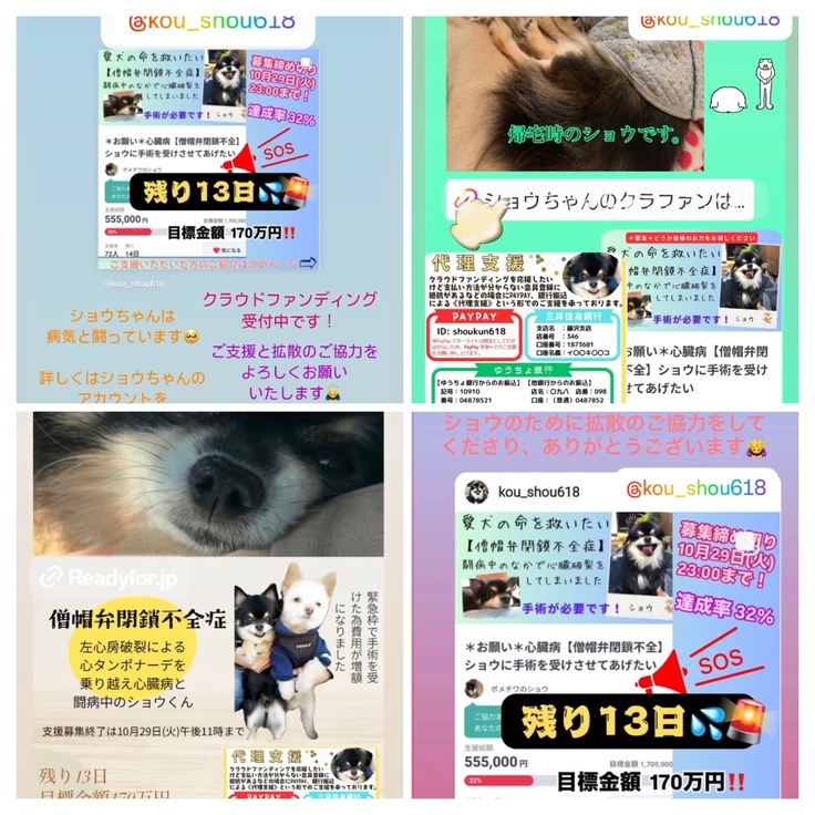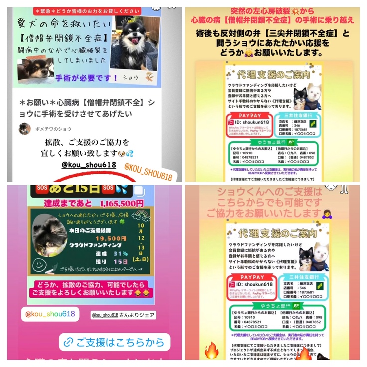 ☆ご支援いただいた支援金は大切に、全てショウの手術費用に使用します。