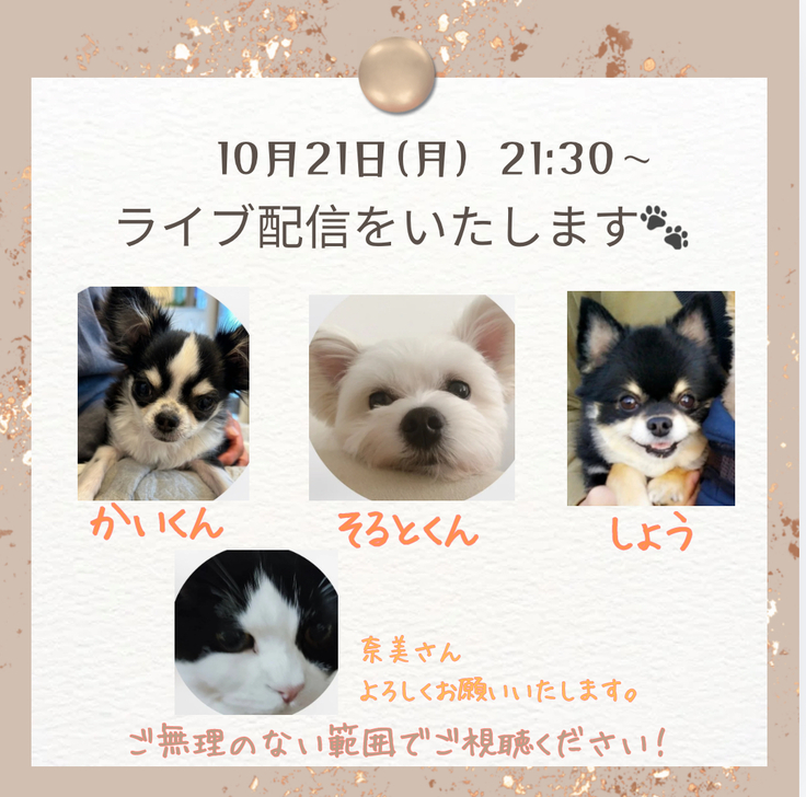 本日【10月21日(月)】Instagramにてコラボ配信いたします🐾