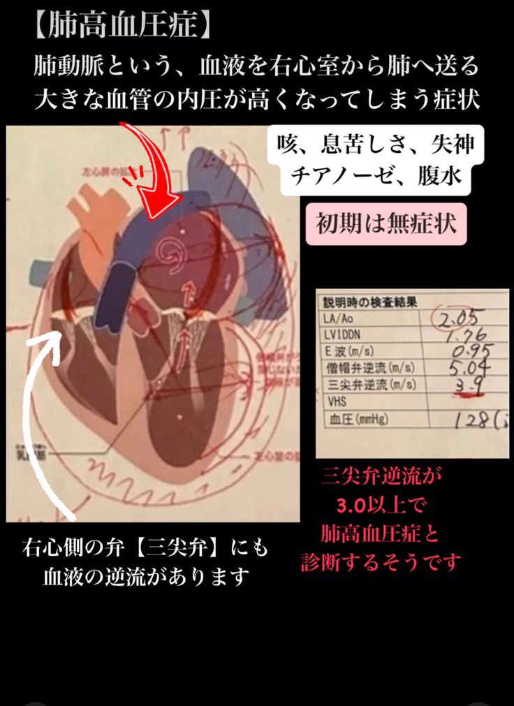 心室"と呼ばれる部屋の間にある "三尖弁”がうまく閉じなくなることにより、血液が逆流してしまう病気です。