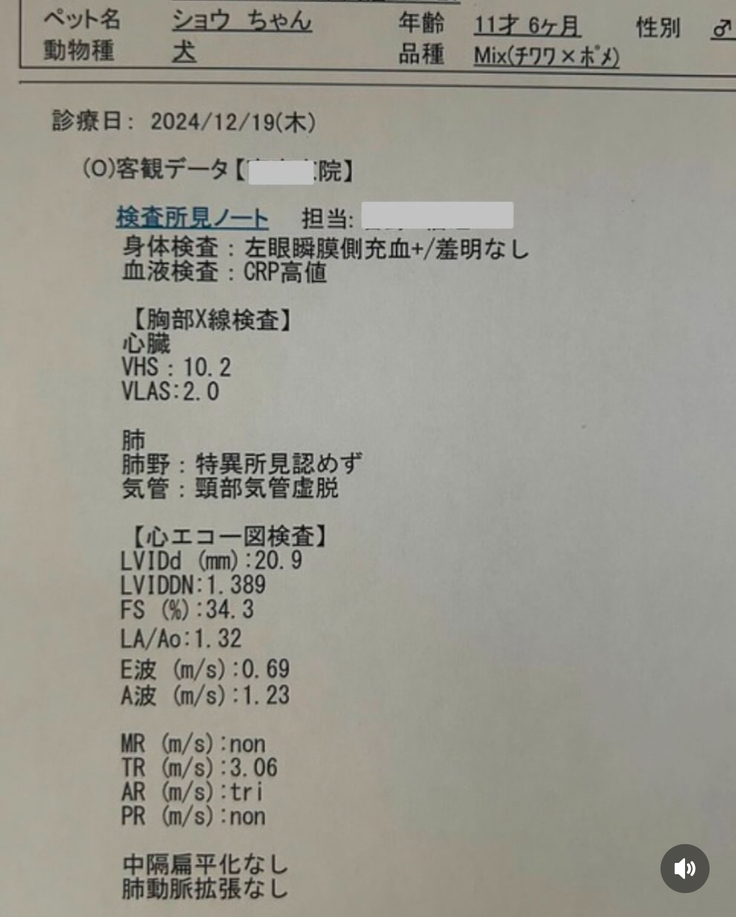 術後、僧帽弁が良くなったら三尖弁も良くなる場合、変わらない場合、進行する場合があるとのことでしたが、ショウは変わりませんでした。