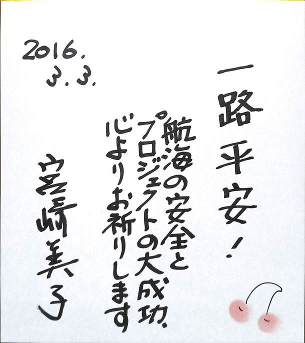 一路平安! 航海の安全とプロジェクトの大成功、心よりお祈りします(宮崎美子/女優)