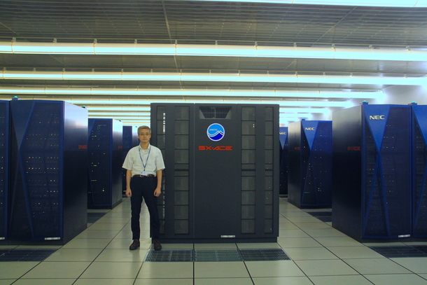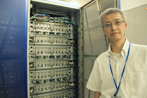 1967年生まれ、長野出身。スパコン「地球シミュレータ」の前にて。