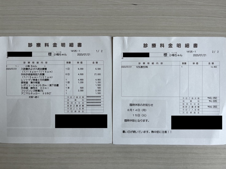 ページ上に掲載している診断書や診療明細書などの資料は全て動物病院から掲載の許諾を得ております。