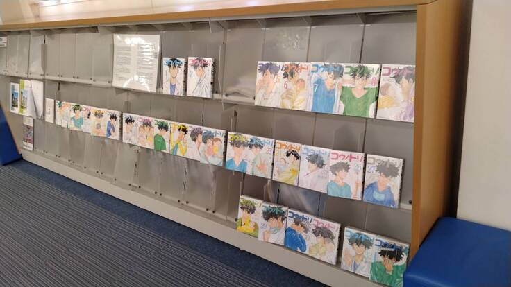 結構人気で、中学生が休み時間には座り込んで読みふけっているとのこと。これを見るとちょうど3巻と4巻が借りられているようです。