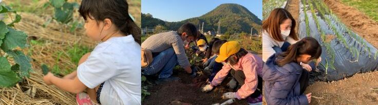 畑では夏野菜やさつま芋、玉ねぎの植え付けや収穫を子どもたちと一緒に行っています