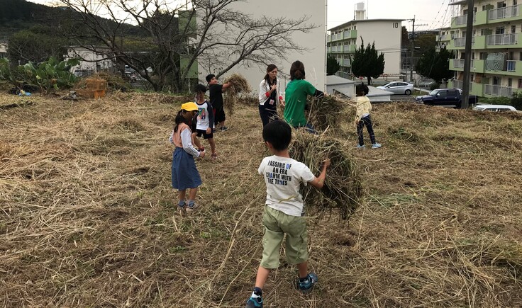子どもたちと一緒に草集めをして
