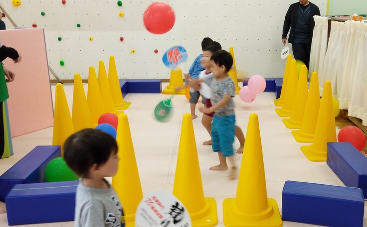 バランスを取りながら、旗揚げゲーム