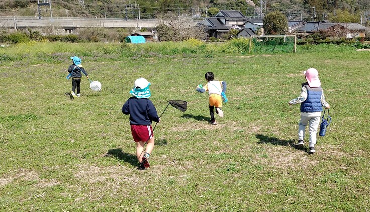 ポカポカ陽気の春、網を片手に蝶を追って