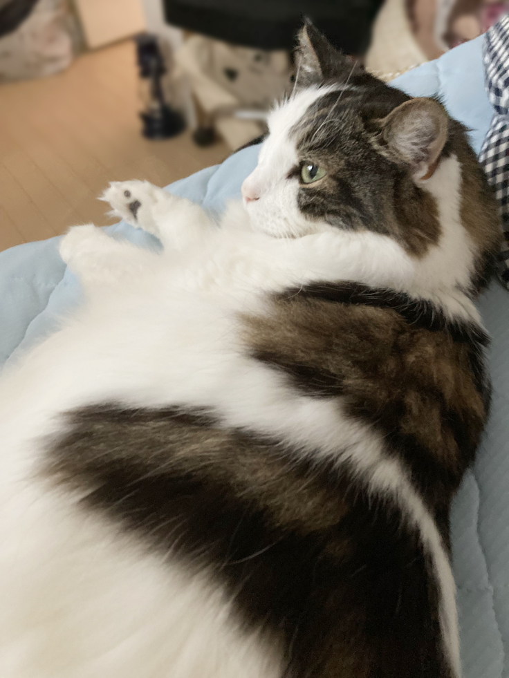 腎臓の数値がよくなったのが嬉しくて、検査から帰宅してたくさんたくさん褒めました。そしたら嬉しかったのか、その後ずーっと私のそばにいてかわいかったです。(いつもはそんなに甘えない子なので)