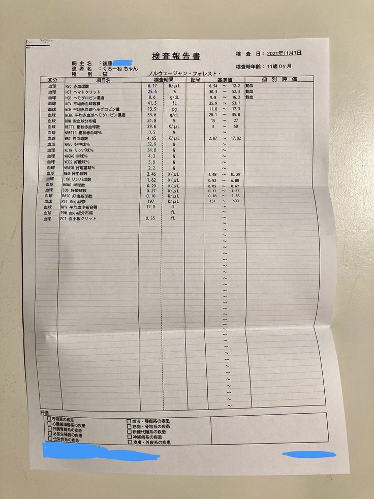 CRE=2.56(前回 2.66 正常値 0.8~1.8)