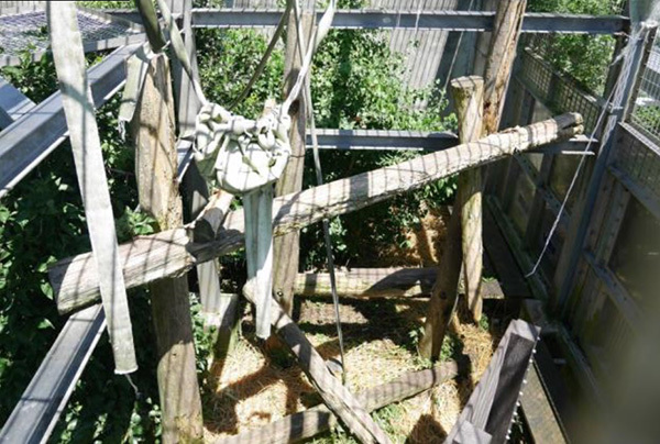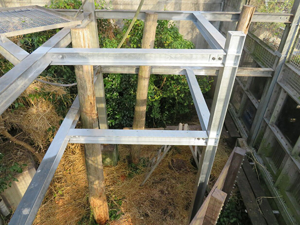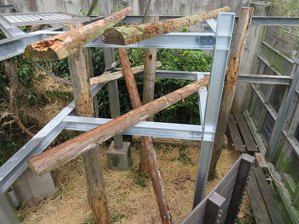 頂いたご支援をもとに、チンパンジー屋外運動場の三次元構築物を改修しました。