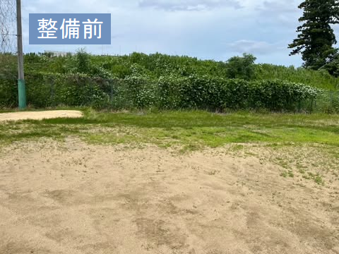 今月12日(木)に今回のクラウドファンディンで改修を行うグラウンドの外野部分を部員たちキレイにしました。