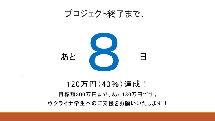 多くの皆さまからご支援をいただいております本プロジェクトも終了まで残り8日となりました。