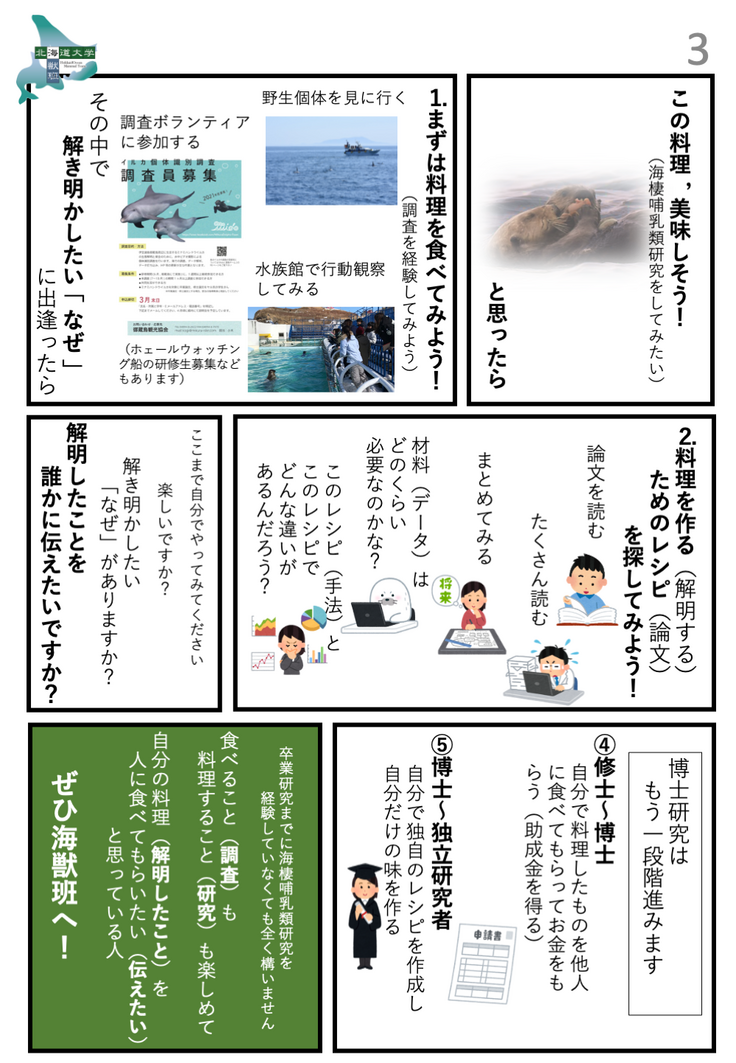 たくさんの引き出しを持っている人が,研究も楽しめると思っています!海獣班で待ってます!