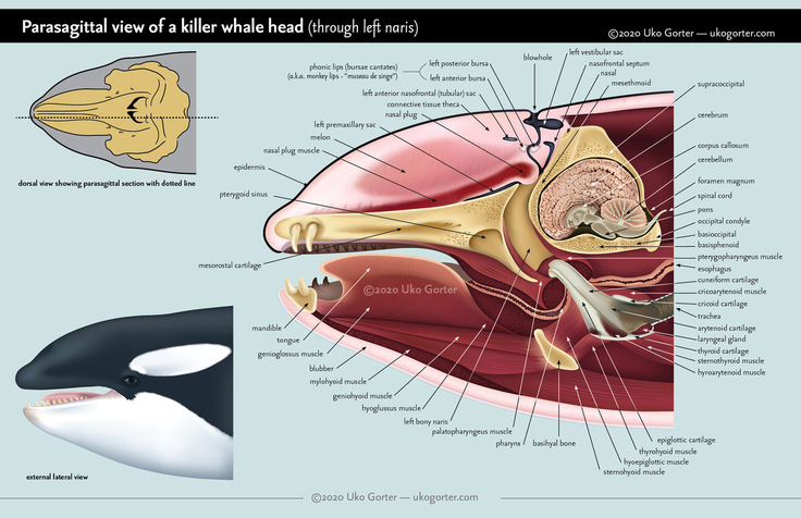 シャチの発音器官の構造(イラスト:Uko Gorter)