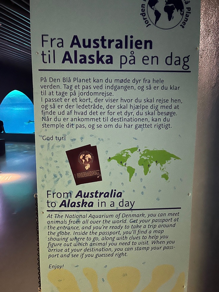 なぜデンマークの水族館にアラスカのラッコ?とも思いましたが、水族館の展示が「オーストラリアからアラスカまでを1日で回れる」というコンセプトみたいです。
