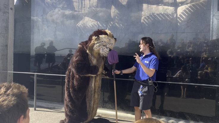 お話が終わった後、飼育員さんに話をすると、ラッコ搬入時を知っている詳しい飼育員さんに連絡してくれて、その方と話すことができました!