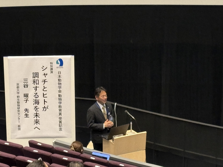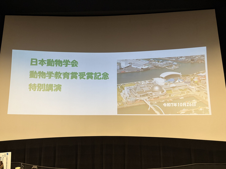 それに先立ち、名古屋港水族館が日本動物学会動物学教育賞を受賞された記念として特別講演会があり、そこでも講演させていただきました!今回はM1のK君による報告です!
