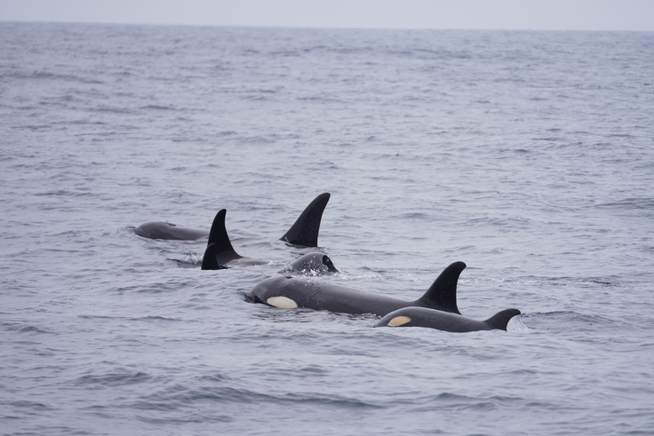 今回は、4日間のうちの3日間、午前から午後にかけて(8:00~15:00ごろ)、海での調査ができました。さらに、この3日間すべてでシャチを観察することができ、かなり運の良い調査となりました。