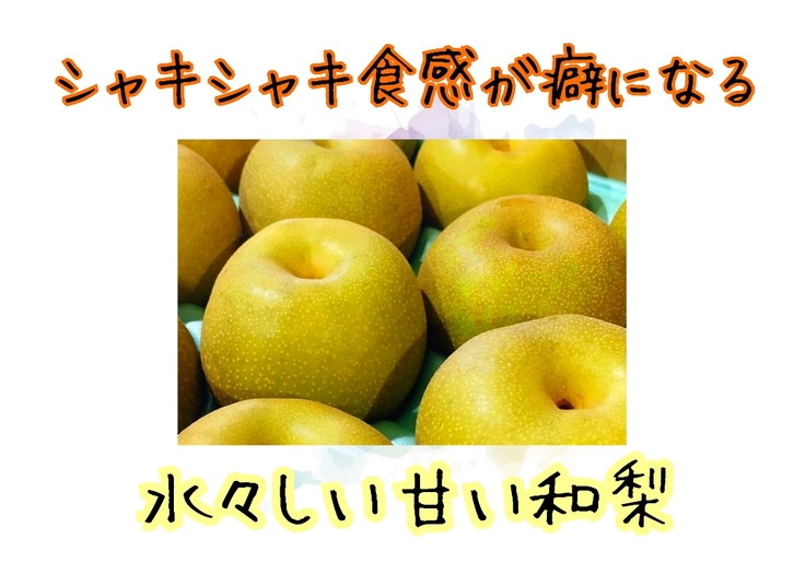 当園の和梨は、大玉でシャキシャキ食感が癖になる甘い和梨です。毎年、小さなお子様にシャキシャキ食感が大人気でリピート率が高いのも特徴です。