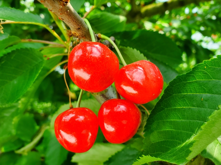 当園のさくらんぼはとにかく大玉で、食べ応えのあるプリップリのさくらんぼです。プリップリで艶のある真っ赤な果実はまさに木に実るルビー。当園のサイズ(大きさ)は2L以上がメインです。大粒のさくらんぼは、見た目のインパクトもあり、果肉も分厚くしっかりとした食感が特徴。さらに甘さもあり、程よい酸味がマッチし、口に入れた瞬間弾ける果汁が口いっぱいに広がります。