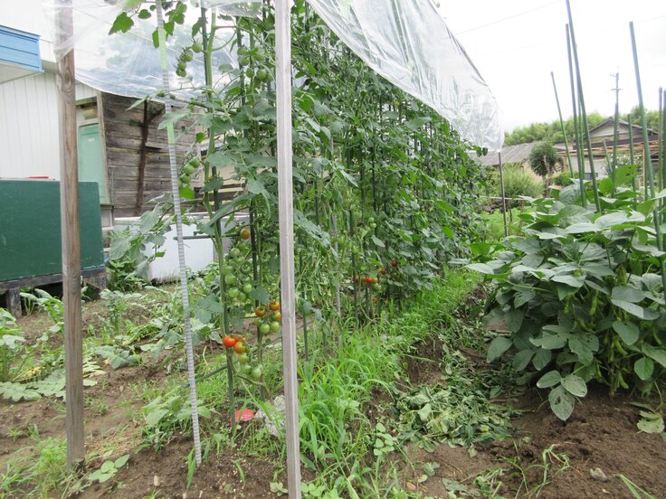 当初菜園を始めてから最初のころ見て不思議だなと思ったのがトマト栽培にビニール傘がさして
