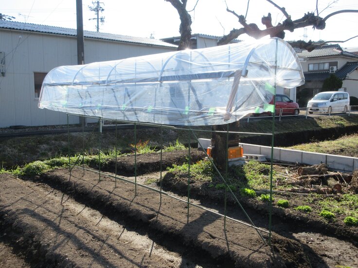 て考案したのが、トンネル支柱(1本足)です。菜園を楽しんでいる人に是非一度試してもらい