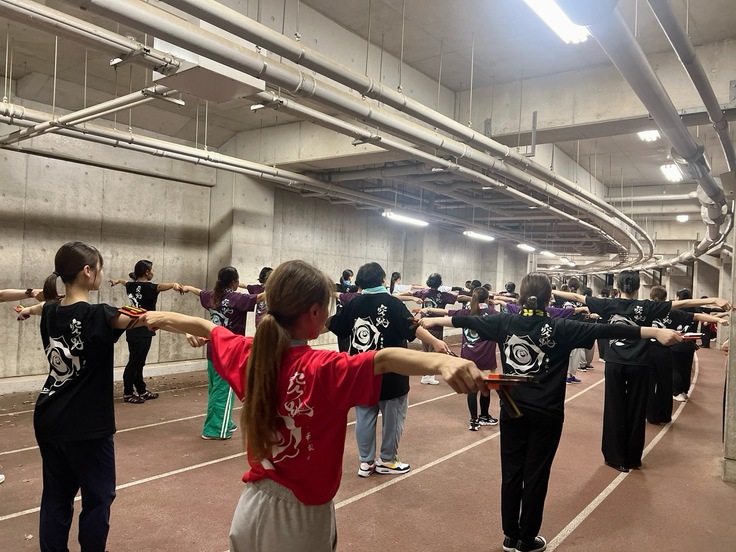 7月は列をそろえながら進む練習や振りの細かい修正などを中心に練習しています。