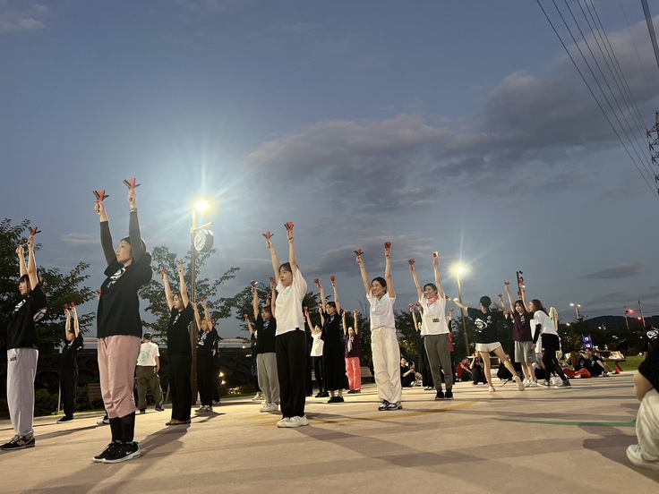 踊り子の皆さんも暑い中、汗だくになりながらも楽しく練習に励んでおります。