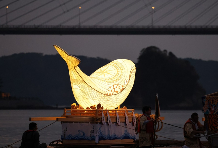 さらに、2022年には戦前まで呼子町の各地で行われていた「呼子くんち」が復活しました。呼子に伝わる民話「親子鯨の弁天様詣り」になぞらえ、和紙で漉き上げた親子鯨の山車を引きながら、町中を練り歩きます。