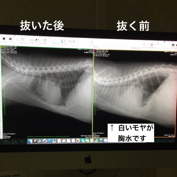 レントゲンを撮ると胸水が溜まっていて、肺などを圧迫していました。