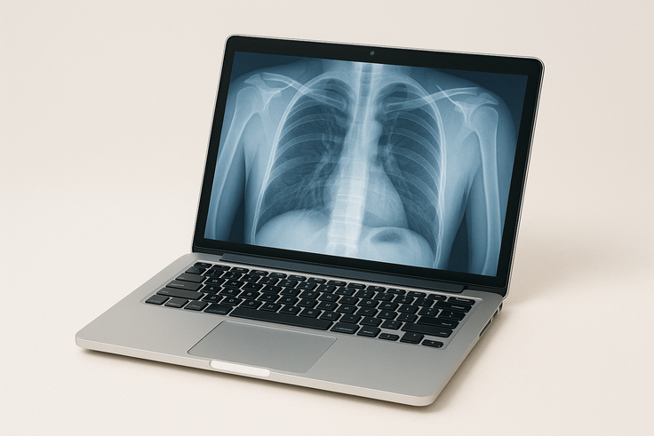 診断用AIとは、胸部レントゲン写真(X線画像)をAI(人工知能)で解析し、異常が疑われる部位を検出・表示する診断支援ツールです。読影医の目に代わり、画像の中から病変の可能性がある領域を自動的に見つけ出し、マーキングを行います。これにより、医師の見落としを防ぎ、診断の精度とスピードの向上が期待されます。