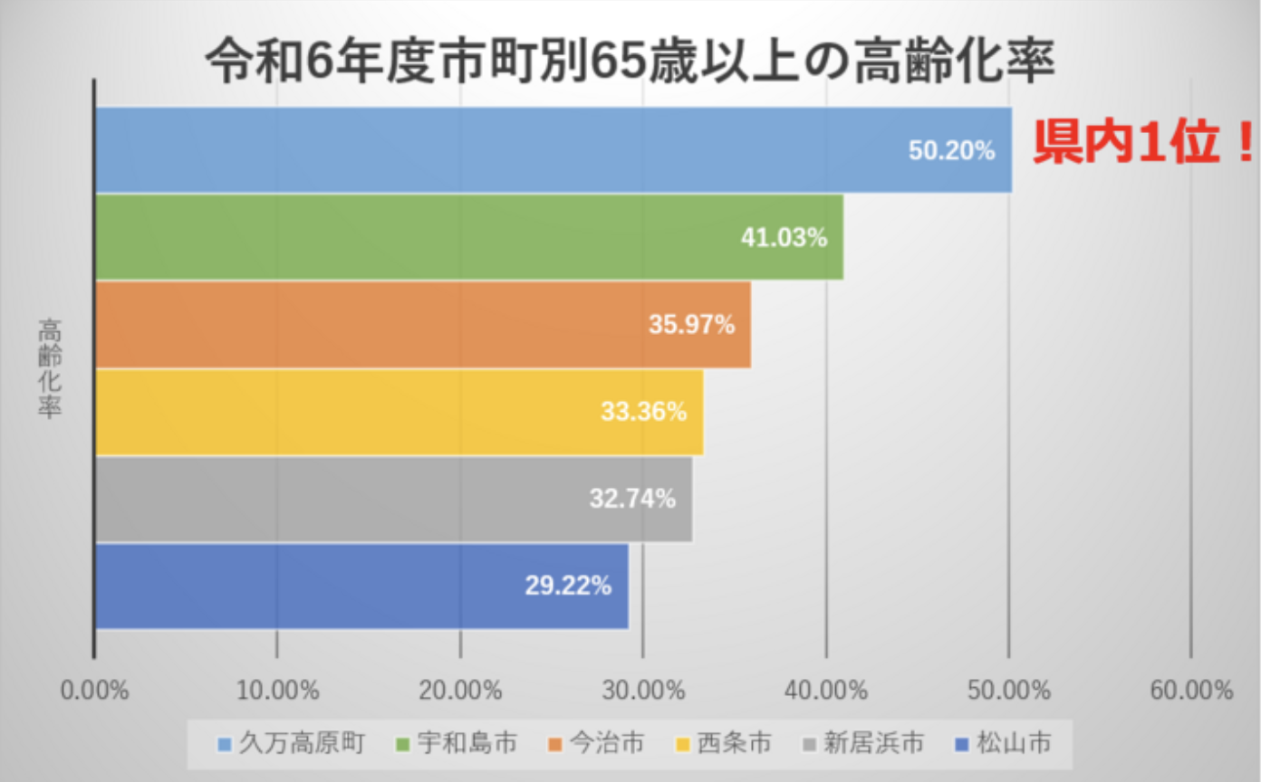 久万高原町は自然に恵まれ、気候も穏やかで、県内有数の観光地を有する魅力的な町です。しかし、県内で最も人口密度が低く、後期高齢化や少子化、人口減少といった課題を抱えています。