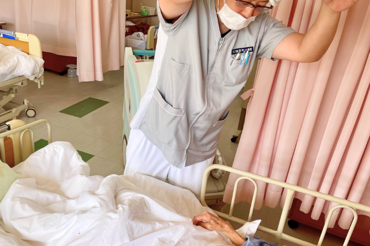 後期高齢化の進展により、入院患者の多くは90歳前後。認知症を伴う方も多く、レントゲン撮影時にじっとしていることが難しい患者も少なくありません。背中が丸くなっている方(円背)も多く、体を支えながらの撮影が必要となるため、技師にとっても身体的な負担が大きく、再撮影が必要になることもしばしばです。