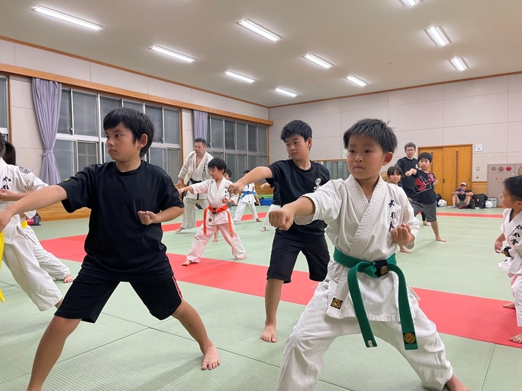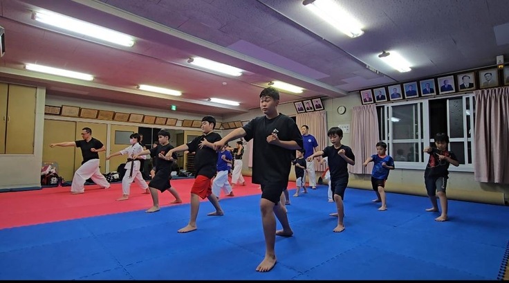 組手(試合形式の打撃)だけでなく、基本の突きや移動稽古も大切に行っております。