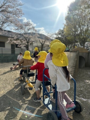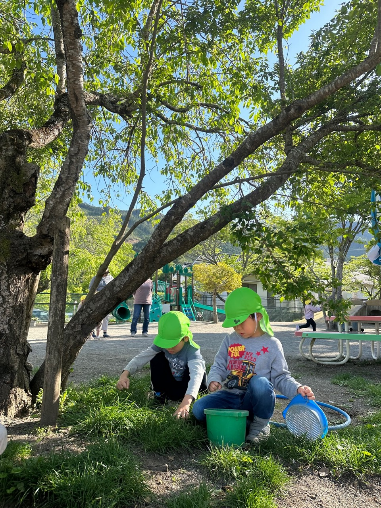 戸外で日の光と新鮮な空気に包まれて子どもたちは過ごしています。