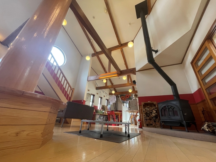 玄関を抜けると、木のインテリアに囲まれた中に、